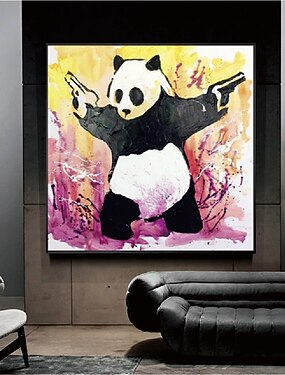 Hecho a mano pintado a mano pintura al óleo arte de la pared panda abstracto graffiti lienzo arte de la pared decoración del hogar lienzo enrollado sin marco sin estirar