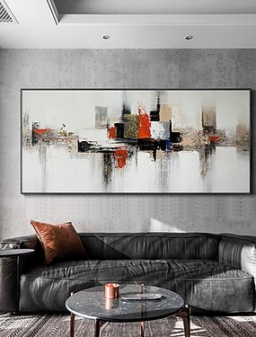 Hecho a mano pintado a mano pintura al óleo arte de la pared de gran tamaño contemporáneo ciudad abstracta decoración del hogar lienzo enrollado sin marco sin estirar