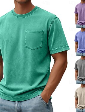 Hombre Camiseta Camisa 100% algodón con lavado ácido Manga Corta Cuello Barco Verano Primavera Todas las Temporadas Color sólido Elegante Vintage Neutral Bolsillo Cuello redondo Desteñido Casual