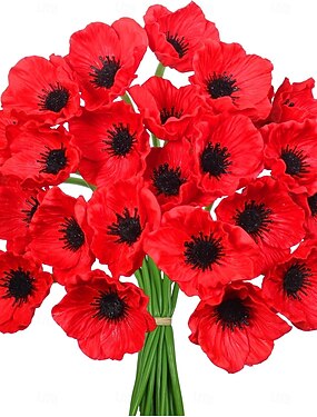 12 ramos de amapolas artificiales rojas en memoria del Día de los Caídos, decoración patriótica en homenaje a veteranos, ramo floral conmemorativo para soldados caídos, para el hogar. &exhibición de