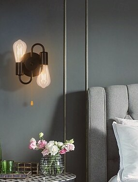 Aplique de pared LED para interiores, 2 luces, metal industrial, E26/E27, apliques de pared, iluminación de pared para dormitorio, baño, cocina, porche, 110-240 V