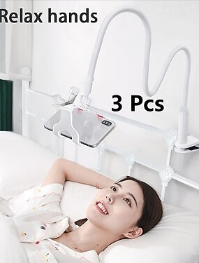 Paquete de 3 soportes flexibles de cuello de cisne para teléfono móvil para cama: soporte giratorio de 360° con brazo largo, soporte con clip para cabecero, escritorio, cocina, soporte manos libres
