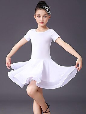 Baile Latino Vestido Un Color Chica Entrenamiento Rendimiento Manga Corta Licra