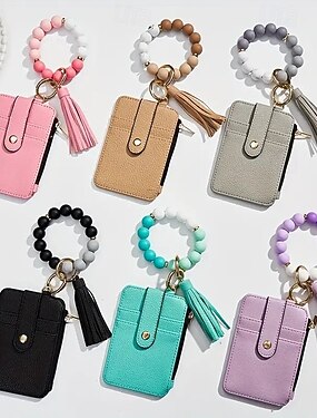 llavero de pulsera, monedero, llavero de cuentas de silicona, pulsera de cuentas de silicona, llavero de monedero, llavero elástico, brazalete
