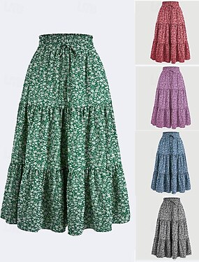 Mujer Falda de vacaciones Bohemia Vintage Casual Maxi Alta cintura Faldas Floral Estampado Microelástico Diario Calle Azul Piscina Verano Poliéster