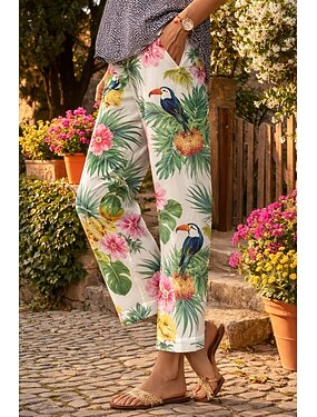 Mujer pantalones Corte Recto Vacaciones Casual Longitud total Cintura Media Floral Graphic Tropical Bolsillo Estampado Diseño de cordón elástico Confortable Comodidad Cómodo Microelástico Exterior