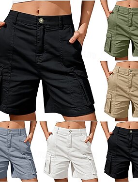 Mujer Pantalón Corto Cargo Pantalón corto Pantalones cortos de verano Pantalones cortos casuales Vacaciones Moda Casual / Diario Corto Media cintura Color sólido Plano Retazos Cremallera Bolsillo