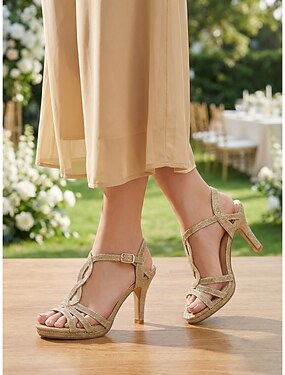 Sandalias de tacón de aguja con purpurina negra para mujer con tira en el tobillo, tacones de noche abiertos para invitadas de boda, boda de moda elegante &zapatos de fiesta de cóctel