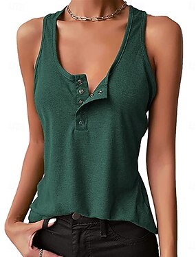 Mujer Camiseta sin mangas Camisa sin mangas Camiseta superior Retazos Botones del pecho Color sólido Moda Clásico Casual Sin Mangas Escote en U Tops regulares Diario Noche Fin de semana Blanco Verde