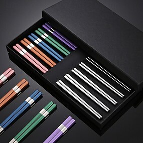 5 pares de palillos reutilizables de acero inoxidable 304, antideslizantes y multicolores, con aislamiento térmico y anti-escaldaduras.