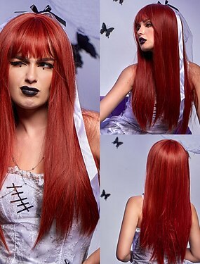 Pelucas sintéticas Uniformes Disfraces carrera Princesa Recto Liso Natural Parte media Corte a capas Hecho a Máquina Peluca 26 pulgadas 613 Pelo sintético Mujer Cosplay Fiesta Moda Naranja