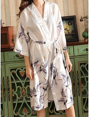 Mujer Ropa de salón Túnica Bata de noche Moda Casual Graphic Pijamas de satén sedoso Retazos Vestidos Vacaciones Calle Cita Media Manga Escote en Pico Azul cielo Negro Blanco Rojo Gris Verano