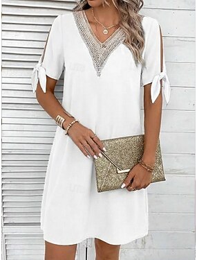 Mujer Mini vestido Vestido blanco Vestido de una línea Elegante Moda Moderno Exterior Vacaciones Noche Ajuste regular Plano Manga Corta Escote en Pico Azul Piscina Negro Blanco Burdeos Verano