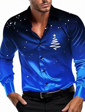 Navidad Hombre Estrella / Galaxia Camisa para Vestido Abotonar la camisa Manga Larga Artístico Casual Navidad Ropa de fiesta de noche Otoño Invierno Primavera verano Cuello Camisero Abotonar