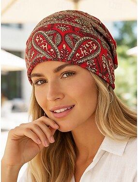 Gorro bohemio con estampado paisley para mujer, suave gorro y braga para el cuello de poliéster multicolor, accesorio ligero de estilo vintage para mujer, perfecto para uso diario informal, vacaciones y viajes.