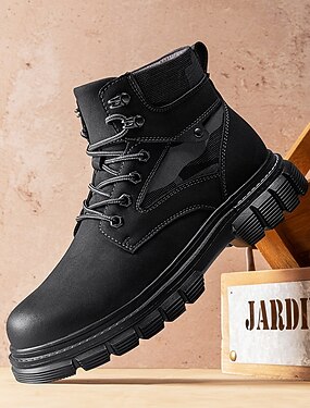 Botas negras de piel sintética con cordones para hombre, suela gruesa y estilo militar: perfectas para motociclistas Harley, punks, ropa informal y moda urbana actual.