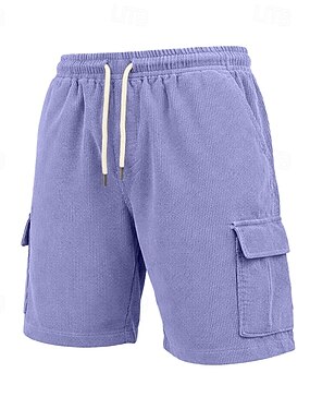 Hombre Pantalón corto Pantalones cortos casuales Pantalones cortos de pana Pantalones cortos texturizados Bolsillo Cintura elástica Plano Un Color Comodidad Transpirable Sobre la Rodilla Casual