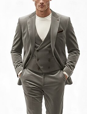 De los hombres Trajes de tweed Casual Negocio Negro Marrón Otoño invierno Traje Solapa de Pico Moda Diario Color sólido Ajustado Juego de 3 piezas Recto 2 botones