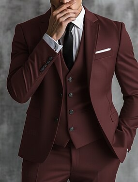 De los hombres Trajes de negocios Casual Boda Negro Burdeos Primavera, Otoño, Invierno, Verano Traje Solapa de Pico Diario Casual Color sólido Ajustado Juego de 3 piezas Recto 2 botones