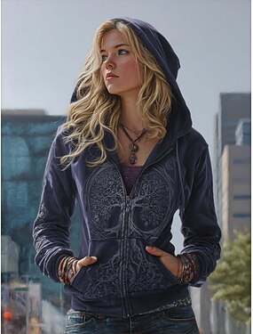 Mujer Sudaderas con cremallera Cremallera Bolsillo Estampado Graphic Plaid Moda occidental Retro Manga Larga Con Capucha Tops regulares Calle Uso Diario Amarillo Rojo Morado Verde Trébol Primavera