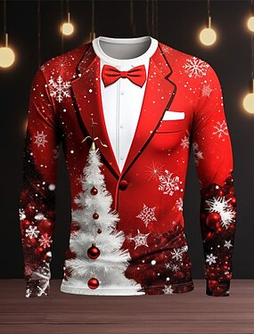 Navidad Hombre Árbol de Navidad Copo Lazo Camiseta Manga Larga Camiseta Impresión 3D Cuello Barco Camisa Moda Design Fiesta Casual Festivos Rojo Verano Primavera Otoño Ropa S M L XL XXL XXXL