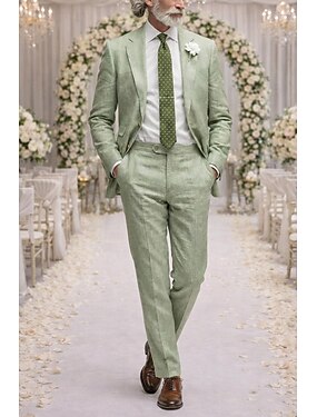 De los hombres Smoking Trajes de Lino boda en la playa Boda de primavera Azul Piscina Verde Trébol Primavera verano Traje Solapa de Pico Moda Fiesta Color sólido A Medida Juego de 2 piezas Recto 2
