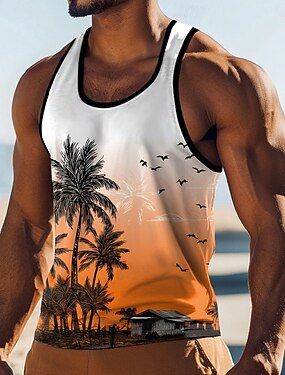 Camiseta sin mangas con estampado de gaviota tropical y palmeras para hombre, cuello en U, para verano, playa, vacaciones, moda informal, deportiva, tallas S, M, L, XL, XXL, XXXL