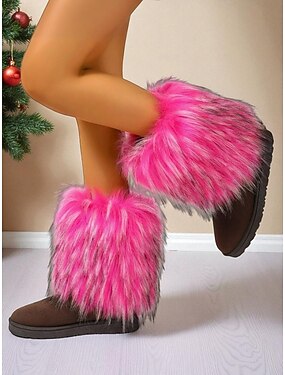 Botas de nieve de piel sintética esponjosa para mujer, botines cálidos de invierno para interior &Ropa para actividades al aire libre, cómodos zapatos de felpa para Navidad, viajes de esquí &clima