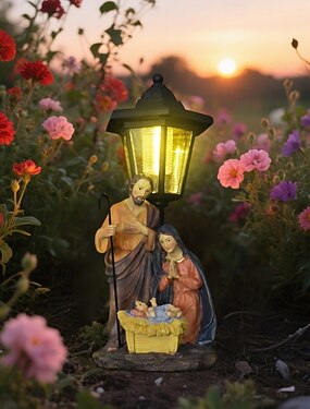 1 figura de resina de belén solar impermeable para exteriores, luz para escena del nacimiento de Jesús, decoración de césped para camino de jardín, iluminación de paisaje de granja, decoración