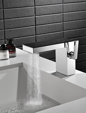 Grifo para lavabo de baño, cascada de latón, grifos de baño de estilo moderno con un solo orificio y un solo mango con agua fría y caliente