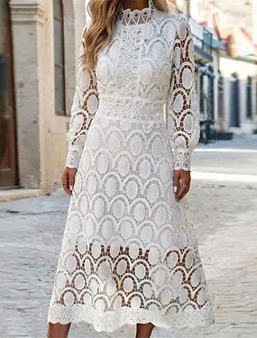 Mujer Vestido Midi Vestido maxi Vestido blanco Vestido de encaje Vestido informal Elegante Moda Moderno Exterior Vacaciones Noche Ajuste regular Delgado Geométrico Manga Larga Cuello Alto Escote Chino