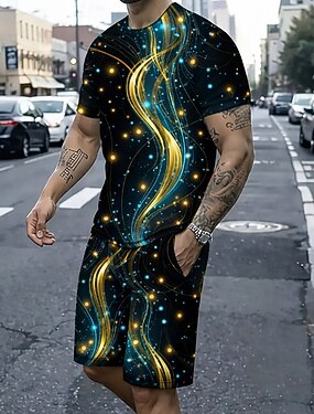 Hombre Geométrico Línea 2 piezas Conjuntos de camisetas Tops de verano Manga Corta Pantalones cortos Cuello Barco Deportes Casual / Diario Diario Vacaciones Impresión 3D Verano Azul Piscina Rojo