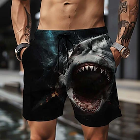 Hombre Animal Tiburón Impresión 3D Pantalones de Natación Pantalones de Surf Bañador largo Media cintura Vacaciones Deportes Ropa de calle Fiesta Casual Diario Correa con forro de malla Cintura