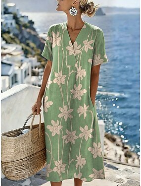 Mujer Vestido Midi Vestido de cambio Vestido de verano Vacaciones Casual Estilo playero Diario Noche Ajuste regular Ombre Floral Graphic Manga Corta Escote en Pico Azul Piscina Rosa Rojo Verde Trébol