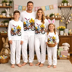 Mirada familiar Semana Santa Pijamas Graphic Conejito Casual Estampado Blanco Manga Larga Vacaciones Trajes a juego