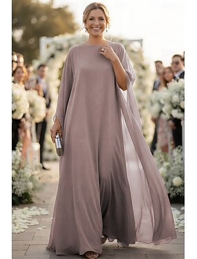 Vestido de noche A-Line de chiffon vestido elegante invitada formal de boda longitud hasta el suelo manga larga cuello barco con fruncidos
