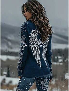 Mujer Camiseta Estampado Graphic Geométrico Plantas Vintage Elegante Casual Manga Larga Cuello Barco Tops regulares Diario Fin de semana Azul Piscina Rosa Azul cielo Fucsia Naranja Primavera Otoño