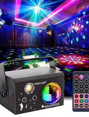 Luces de discoteca, luces de fiesta activadas por sonido con control remoto, proyector, luces estroboscópicas para decoración del hogar, cumpleaños, karaoke, Navidad, bares y espectáculos.