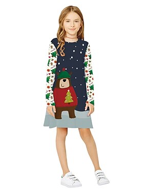 Girls ' 3D Árbol de Navidad Copo Vestido Vestido de copo de nieve Manga Larga Impresión 3D Otoño Invierno Vacaciones Deporte Diario Estilo lindo Casual Hermosa Niños 3-12 años Vestido informal