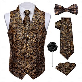 Retro Antiguo Rugido 20s 1920s Accesorios Chaleco Conjunto de accesorios Caballero Gángster Cachemir Jacquard Disfraz Hombre Disfraz de carnaval 7 PCS Navidad Víspera de Todos los Santos Carnaval