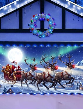 Navidad tapiz Cubierta de puerta de garaje Gran colgante Papá Noel Estilo lindo 3D Fiesta Al Aire Libre Vacaciones Fondos de disparos Yarda Decoración del hogar