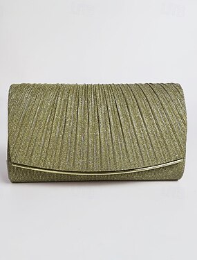 Bolso de mano de noche de satén plisado para mujer, color champán metalizado con marco y cadena dorados: glamour vintage para bodas, cócteles, graduaciones y salidas nocturnas.