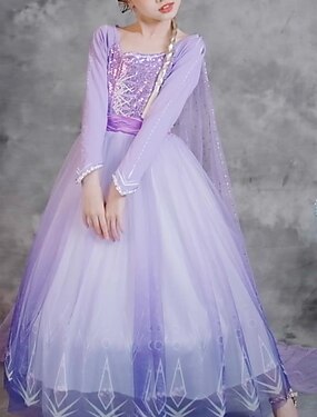 Vestido para niñas pequeñas de la Semana del Libro 2026, de La Sirenita, de malla lisa, color morado y rosa ruborizado, largo, sin mangas, corte regular.