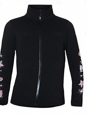 Chaqueta polar para patinaje artístico, para mujer y niña, para entrenamiento, competición, térmica, cálida, con cristales y diamantes de imitación, manga larga, para patinaje artístico, color negro,