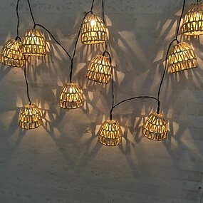 Guirnalda de luces de ratán tejidas a mano con 10 bombillas LED, luces decorativas enchufables para interiores, exteriores, balcones, patios, jardines, bodas y dormitorios.