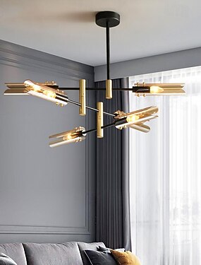 Lámpara de techo moderna con luces LED colgantes, lámpara de techo empotrada moderna para comedor, sala de estar, color negro y dorado, 6/8/10/15 luces, 110-240 V