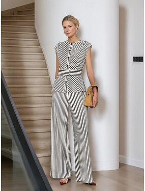 Mujer Conjuntos de pantalones Sin Mangas Escote Redondo A Rayas Moda Ropa de calle Casual Diario Exterior Blanco Vino Azul Marino Verano Holgado