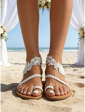 Elegantes sandalias de novia de encaje blanco: cómodos zapatos de boda con punta abierta para ceremonias en la playa, el jardín y el verano.