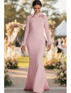 Vestido de Invitada de Boda en Corte Sirena Columna de Largo Completo Vestidos Formales Gown de Noche Vestido para la Madre de la Novia Manga Larga Cuello Redondo Elegante Formal Invitada de Boda