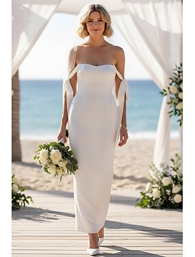 Funda Columna Hasta el Tobillo Vestido de raso Vestido blanco Vestidos de novia Vestidos para la despedida de soltera Vestido de novia Elegante Vestidos Blancos Sin Mangas Sin Tirantes Formal